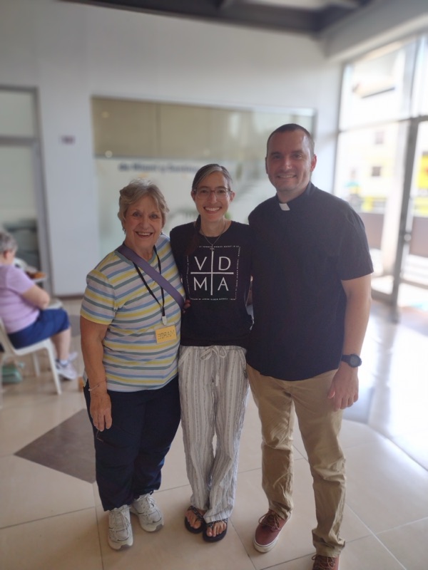 Bety's & Macarena's (far right & 2nd from right) smiling faces greeted me at the registration table. Not long after, Liana (far left), wife of new seminary student Luis Enrique (Cuba) joined us. She's an optometrist! It canNOT be a coincidence that after months of visa paperwork, a seminary wife who