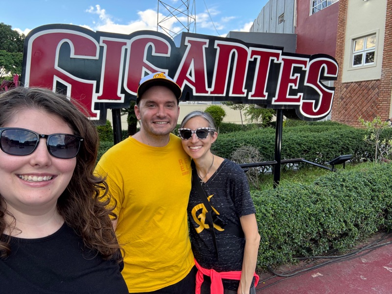 Ashley (left), joining us from PR for a month to support the Human Care team, joined us for this one. The Gigantes del Cibao have a bucking bronco in their logo and are also known as the "Potros" (colts).