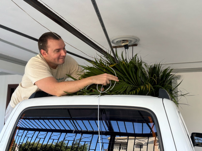 Palm Sunday in the tropics is BYOP. Josh, his supervisor Ross, and fellow Vicar Gavin cut enough for the whole congregation plus more to adorn the sanctuary.