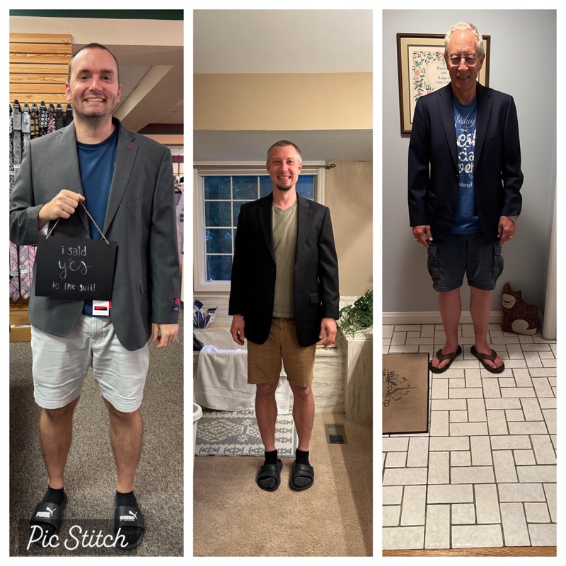 ...and Josh said yes to the suit. My brother (center) and dad (right) liked his style.