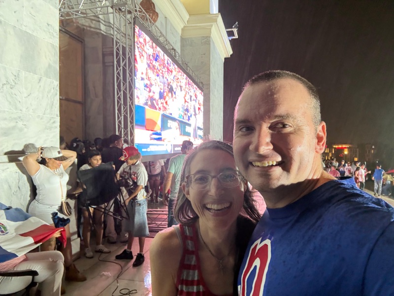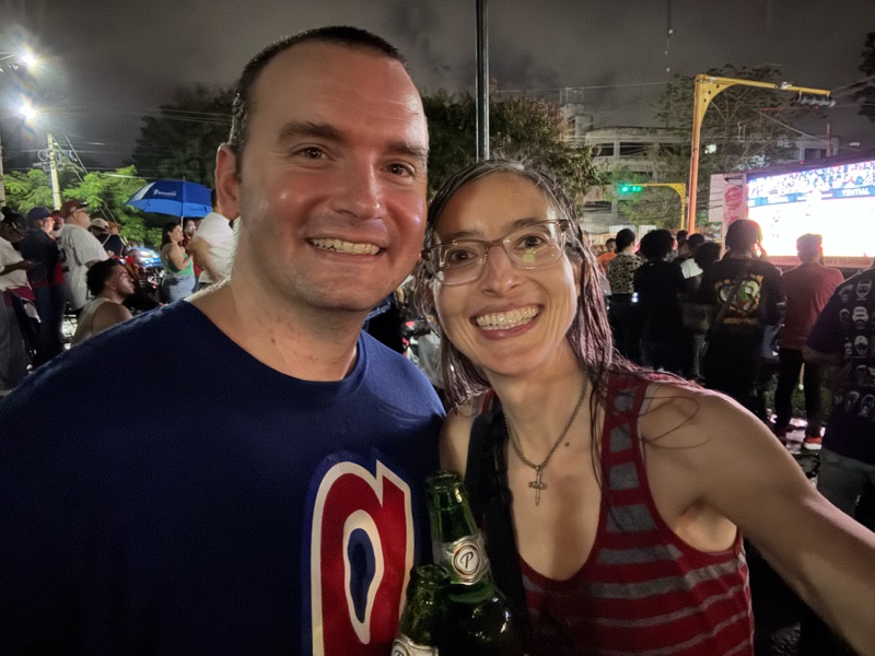 We decided that a couple of Dominicans surmising that we were gringos and boisterously insinuating that the DR was surely going to win capped off our experience enough that we could head home. By the time we made our way down and found a street corner suitable for an Uber pickup spot, the rain had let up and we'd warmed up a little from the walk. We bought beers from a guy with a cooler and decided to stick around for another couple innings. During our descent, the US had scored again, making it 2-1.