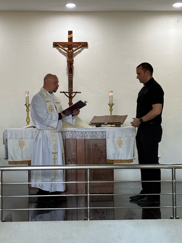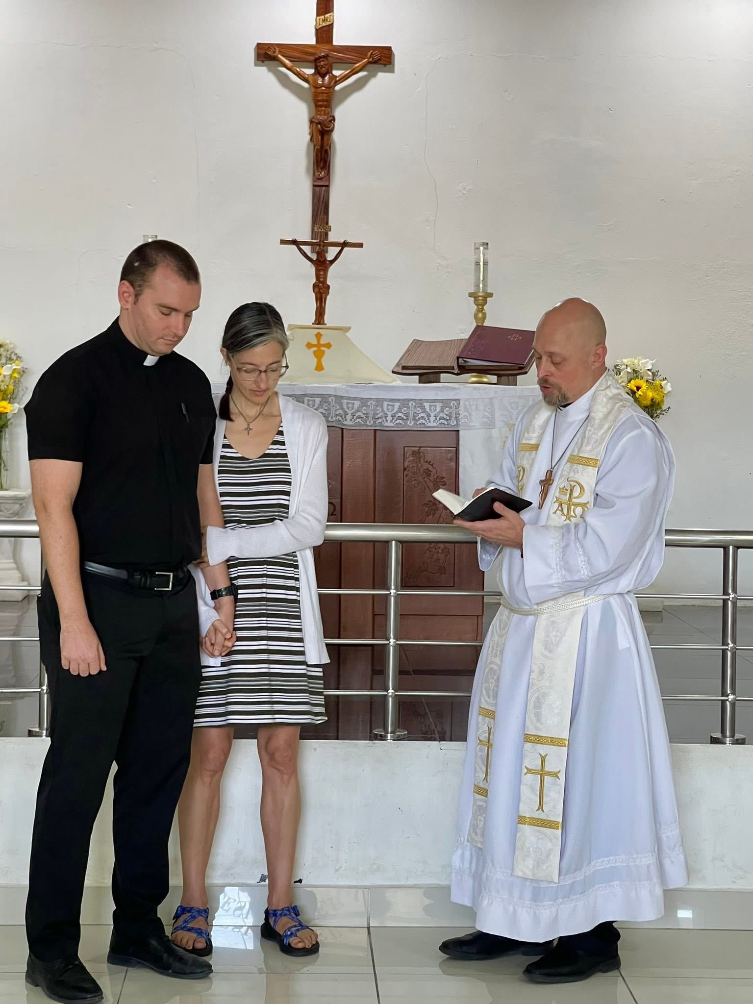 Toward the end of the service, Ross called Josh up for whatever you call the opposite of the rite of installation for a vicar, which didn't exist in English.