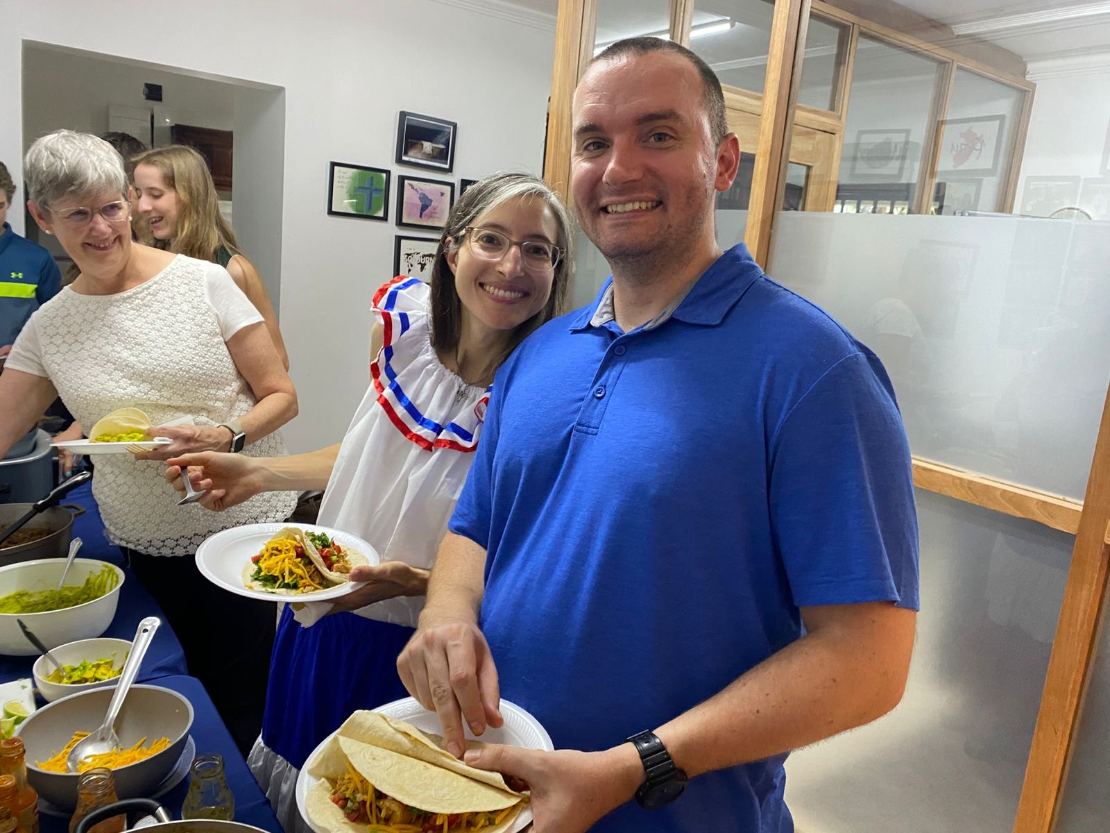 Well, just English worship and a potluck for us; we got to skip the "meeting" portion ;) I debuted the Dominican dress Josh got me for Christmas, and after a scrumptious Taco Tuesday meal, the team regaled us with a photo slideshow, lots of kind parting words, and a print of the Dominican by former missionary Lizz Warren that everyone had signed.